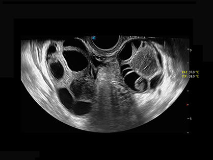 大角度腔内容积探头,可完整包络子宫及盆底结构,充分展示组织结构毗邻关系。